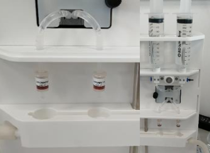 Press the start button on the APUsim. The sample is pumped through the activated carbon columns at a rate of 3 ml/min taking 45 minutes (including an automated 25 ml rinse)