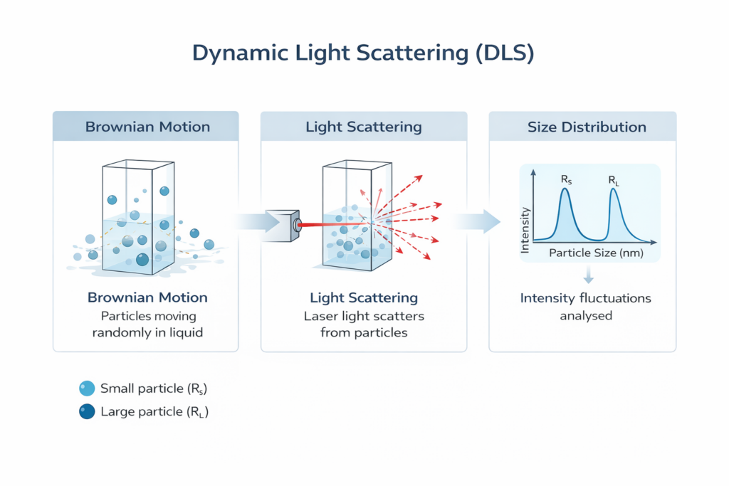 Dynamic light scattering is a widely used technique for characterising the size of nanoparticles and macromolecules dispersed in liquids. By analysing fluctuations in scattered light caused by the Brownian motion of particles, DLS can determine particle sizes ranging from approximately 1 nm up to several micrometres. Because the technique is fast, reliable and relatively simple to operate, it has become an essential analytical tool in both research and industrial laboratories when working with colloidal suspensions, nanoparticle dispersions and protein formulations.