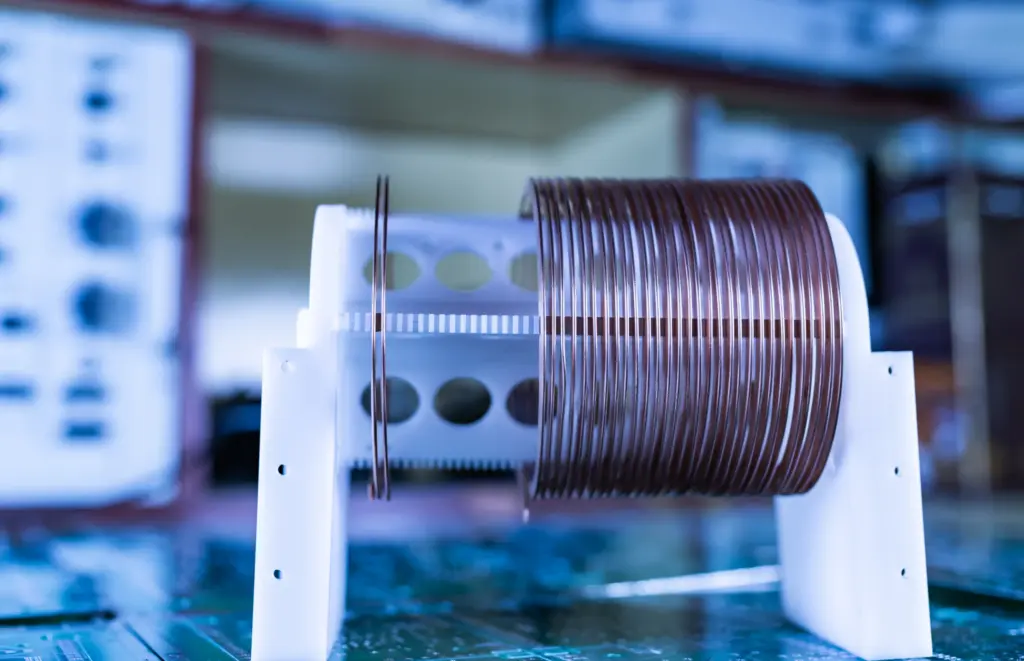 Electrons cannot pass through glass, so SEM lenses are electromagnetic. They are made up of a coil of wires inside metal poles.