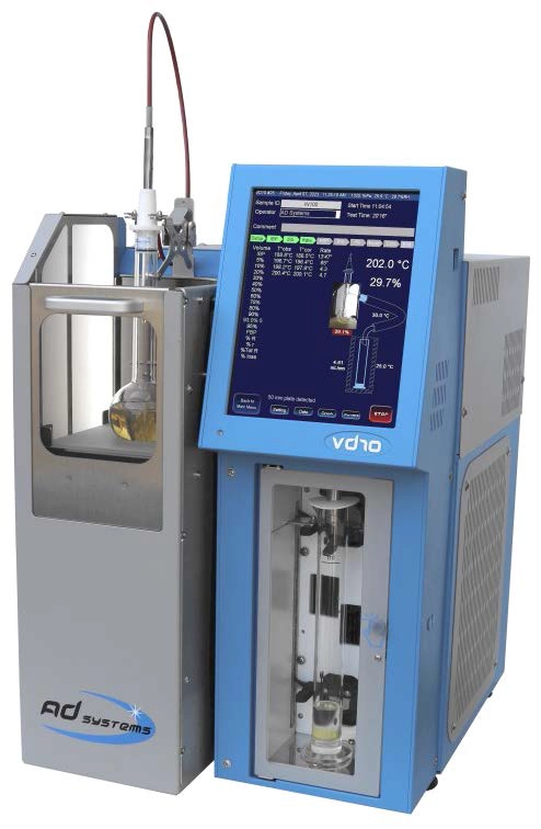 Discover the VD10 automatic video distillation analyser for ASTM D86 fuel testing with real-time boiling