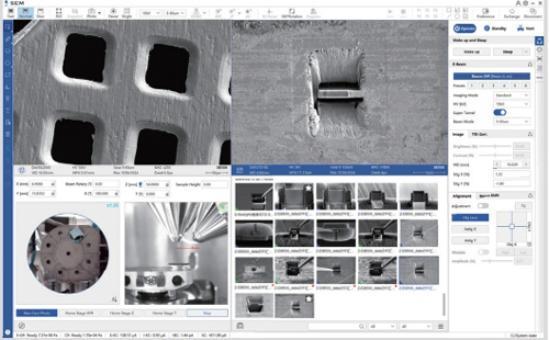 • Gallium-focused ion beam (FIB) for precise nano-analysis and specimen preparation.