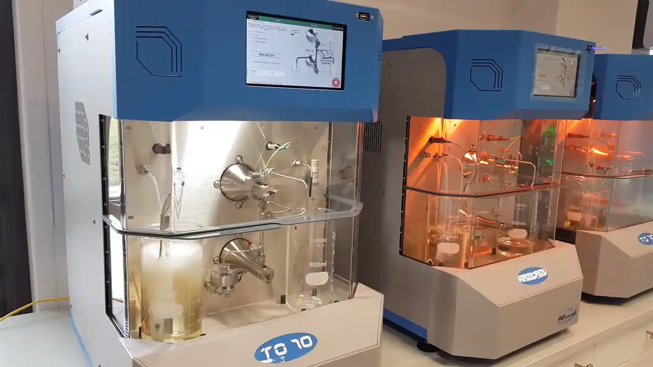 The system includes a sealed test chamber, vapour extraction, and a safety door to eliminate exposure risks.